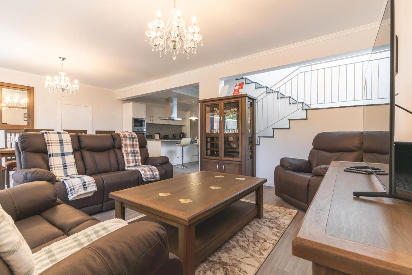 Esta casa de férias dispõe de 3 quartos, 4 casas de banho, roupa de cama, toalhas, uma televisão de ecrã plano com canais por satélite, área de refeições, uma cozinha totalmente equipada e varanda com vista do mar.