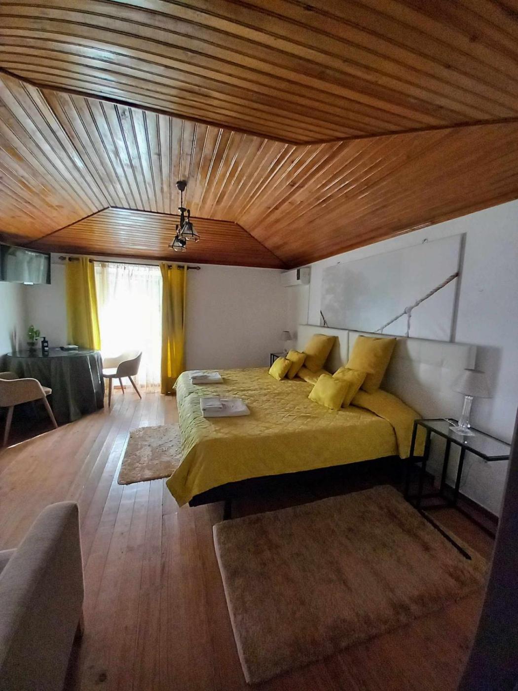 Quarto Quádruplo com Casa de Banho Partilhada. This quadruple room provides a pool with a view. The quadruple room offers air conditioning, a tea and coffee maker, as well as a private bathroom boasting a shower and a hairdryer. This quadruple room has a barbecue, heating and a flat-screen TV. The unit has 3 beds. ;