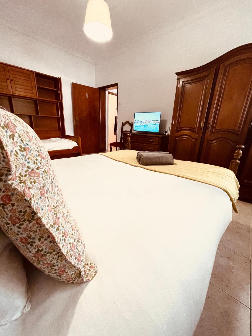 Quarto Duplo ou Twin com Casa de Banho Partilhada. Esta unidade fornece 3 camas.
