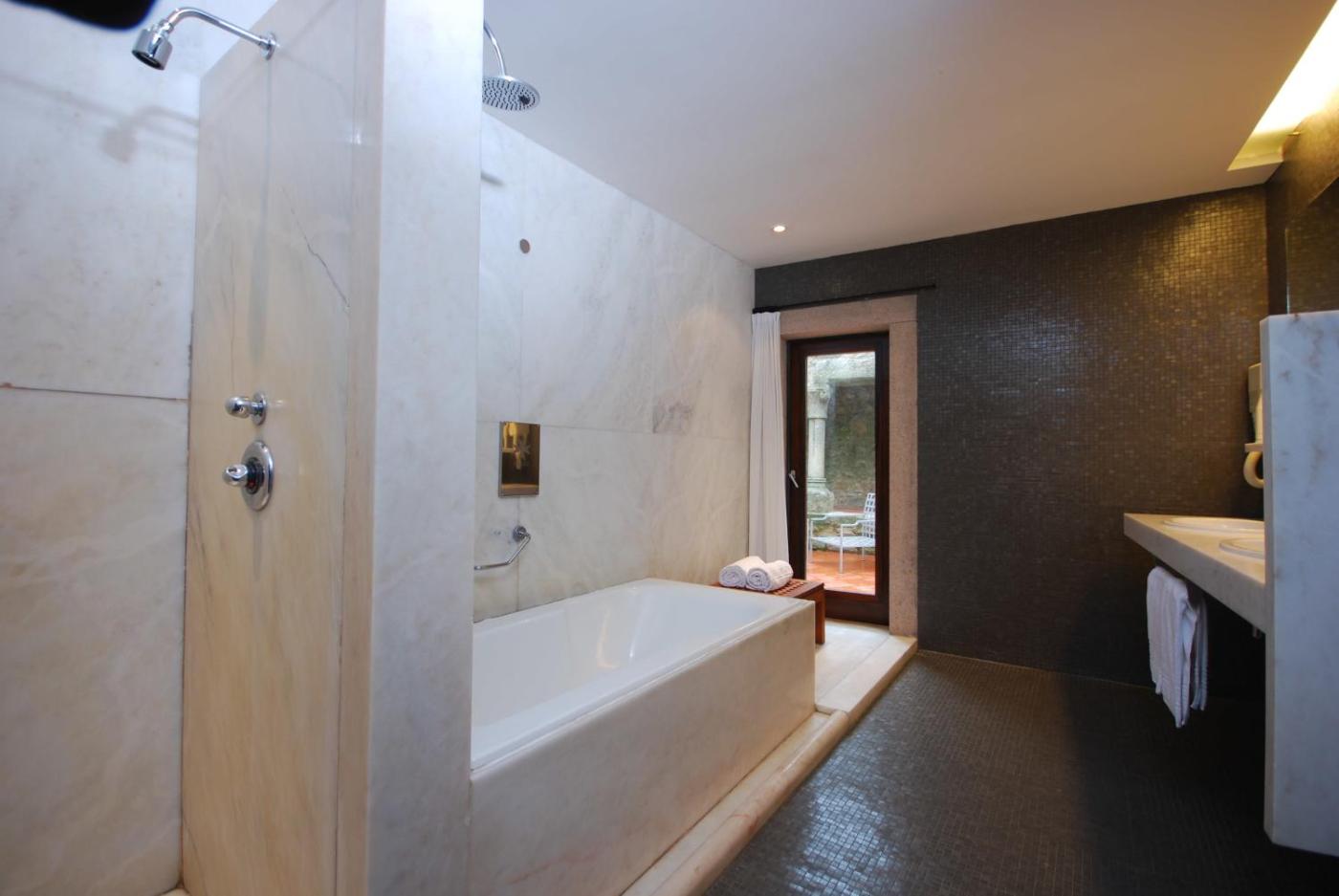 Quarto Duplo Deluxe Superior. Localizados na histórica ala antiga, todos os quartos deluxe são diferentes. A maioria dos quartos apresenta paredes em pedra exposta e camas de dossel. Um dos quartos está equipado com 2 camas individuais. Cada quarto possui ar condicionado, uma televisão de ecrã plano, um cofre, um minibar, um telefone e uma casa de banho privativa com secador de cabelo. ;