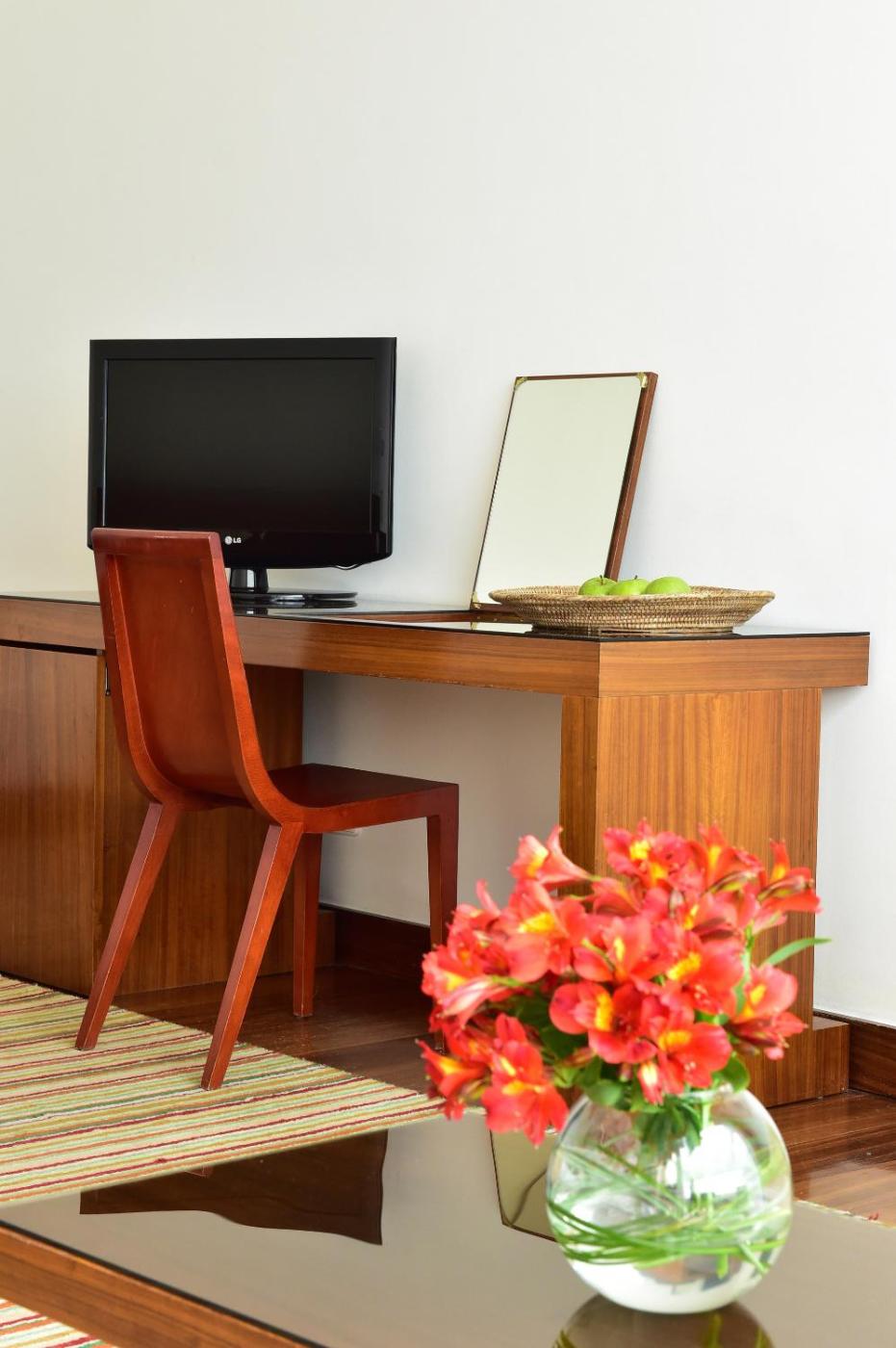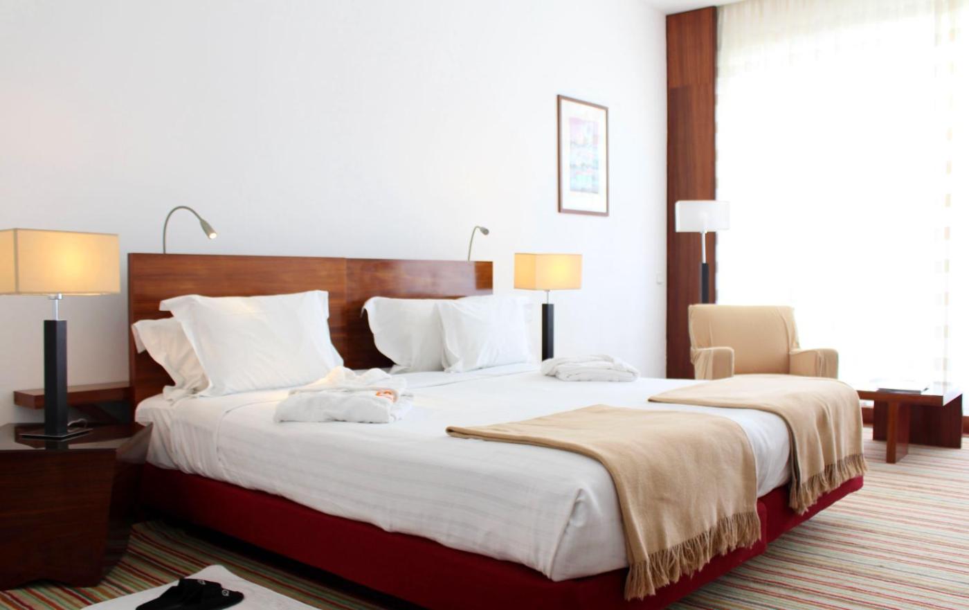 Quarto Duplo ou Twin Superior. Localizado na ala nova, este amplo quarto climatizado possui um design moderno e uma varanda com vistas para o campo alentejano. Cada um está equipado com uma televisão de ecrã plano, um cofre, um minibar, um telefone e uma casa de banho privativa com secador de cabelo. ;