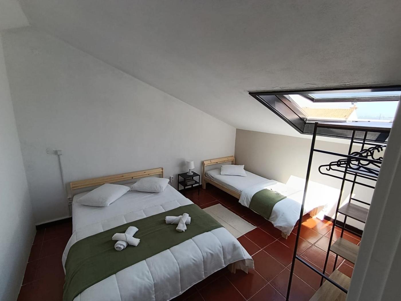 Quarto Triplo Básico com Casa de Banho Partilhada. The triple room has a shared bathroom, a washing machine, a private entrance, as well as a seating area with a flat-screen TV. In the fully equipped kitchen, guests will find a stovetop, a refrigerator, a dishwasher and kitchenware. This triple room features soundproof walls, a tea and coffee maker, a TV and a patio. The unit has 3 beds. ;