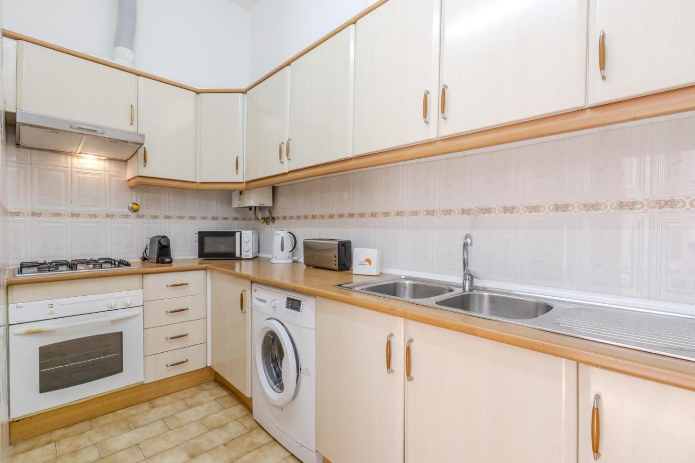 Este apartamento tem 2 quartos, uma sala de estar, uma cozinha totalmente equipada com frigorífico e máquina de café, e 2 casas de banho com chuveiro e um secador de cabelo. Toalhas e roupa de cama são providenciadas neste apartamento.