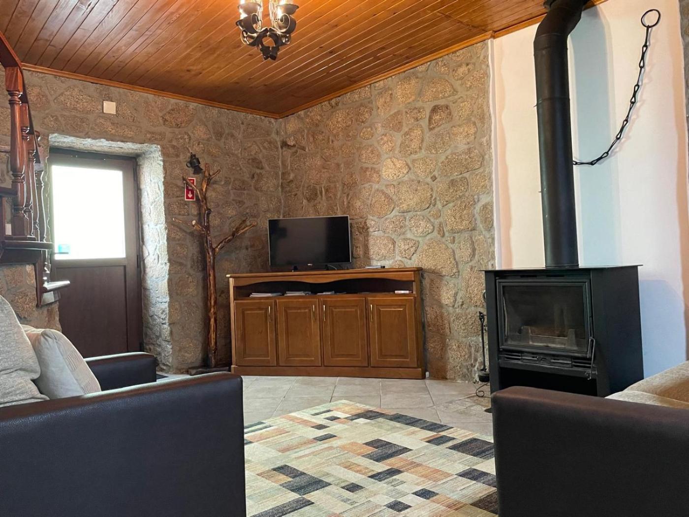 Casa com 2 Quartos. The fully equipped kitchen and living room with sofa and fireplace are located on the ground floor. The 2 twin rooms are upstairs, as well as the bathroom with shower.