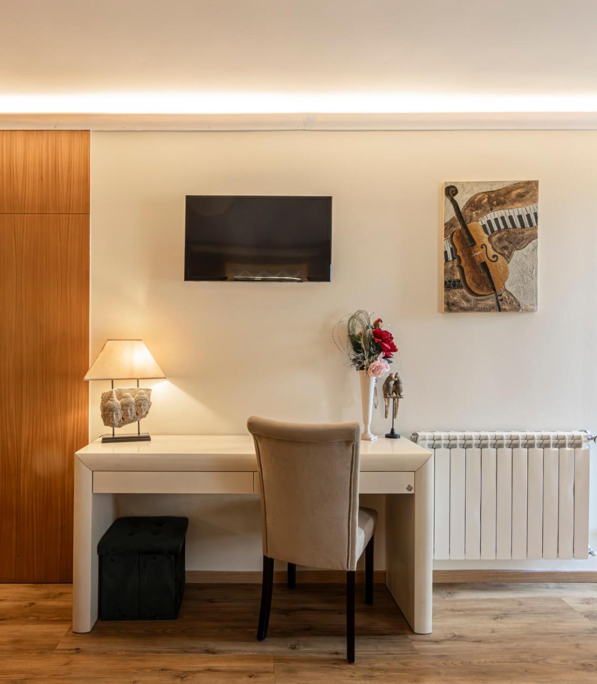 Quarto Duplo. Está incluÃdo um minibar e uma televisão. Este quarto tem também uma casa de banho privativa. ;